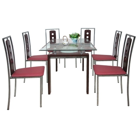 Chất liệu: Khung gỗ tự nhiên, mặt kính. Chưa gồm ghế