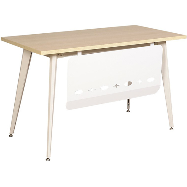 Chất liệu: Mặt gỗ công nghiệp melamine. Chân sắt tấm gấp, yếm sắt sơn tĩnh điện trắng.