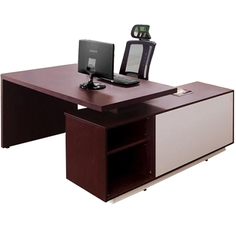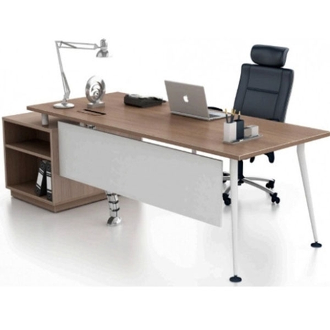 Kiểu Dáng Bàn lãnh đạo 2m kiểu dáng hiện đại kết hợp với GHẾ LÃNH ĐẠO THE ONE tạo nên không gian sang trọng trong phòng làm việc. Tủ phụ sắt mặt  gỗ chia 3 khoang, khoang ngoài cùng có 3 ngăn kéo  để  đổ, 2 khoang  phái trong  để tài liệu và CPU. Bàn có chân sắt tấm gấp kiểu C10, yêm tôn đột trang trí sơn tĩnh điện màu trắng.