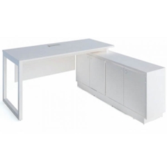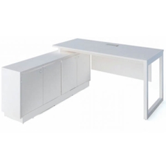 Kiểu Dáng Bàn lãnh đạo hiện đại 1m8. Bàn có tủ phụ bên tay trái hoặc tay phải người ngồi. Khung chân thép chữ U, ống thép hộp.