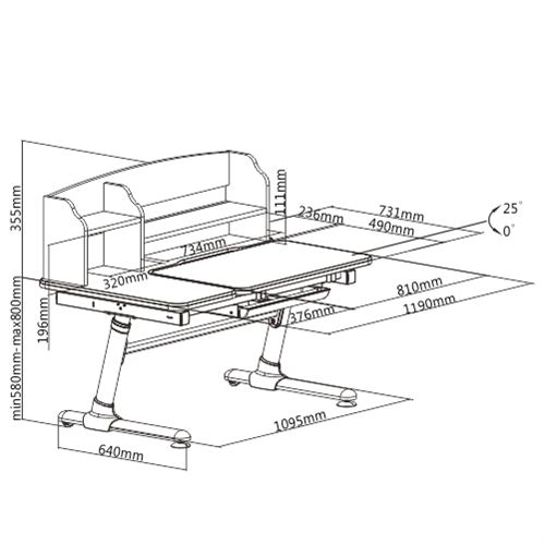 Kích thước: W1200 x D800 x H (580-800)mm. Độ nghiêng 0-40 độ
