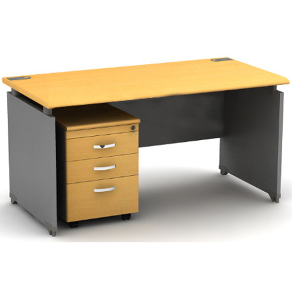 Chất liệu: Chất liệu gỗ công nghiệp cao cấp, bề mặt bàn phủ Laminate HP Hàn Quốc. Chưa gồm hộc tài liệu.