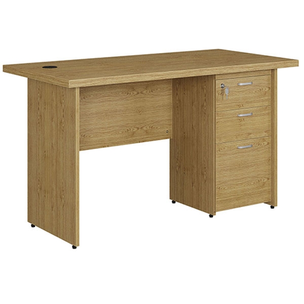 Chất liệu: Gỗ công nghiệp Melamine. Bàn có hộc liền 3 ngăn kéo. Mặt táp viền 32mm