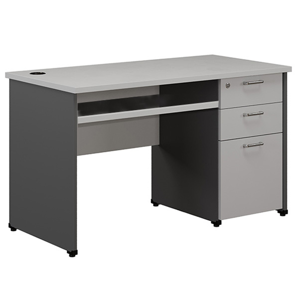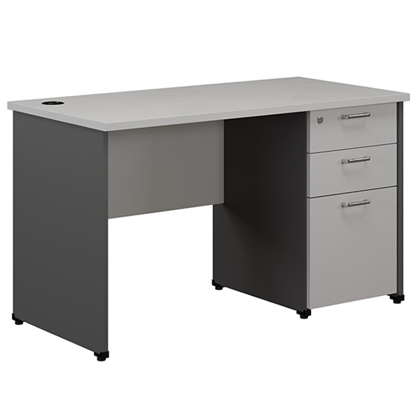 Kiểu Dáng Bàn làm việc có hộc dài sát đất, gồm 3 ngăn kéo.