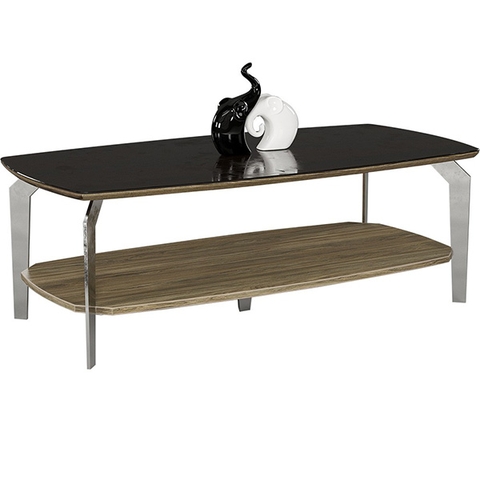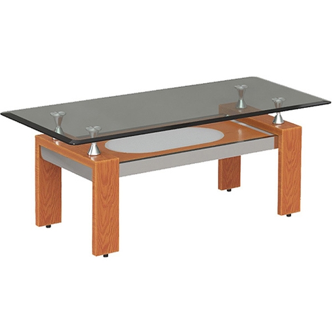 Kiểu Dáng Bàn trà mặt kính chữ nhật. Viền cạnh bàn soi rãnh trang trí. Chân ghép hộp.