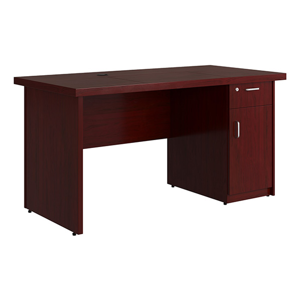 Kiểu Dáng Mặt bàn hình chữ nhật, ghép hộp dày 37mm, dán nẹp PVC xung quanh. Bàn có hộc liền sát đất với 1 ngăn kéo và 1 cánh mở. Yếm bàn trang trí với chỉ soi đen. Tay nắm nhôm, khóa chìa trắng