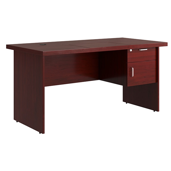 Kiểu Dáng Mặt bàn hình chữ nhật, ghép hộp dày 37mm, dán nẹp PVC xung quanh. Bàn có hộc liền sát đất với 1 ngăn kéo và 1 cánh mở.. Tay nắm nhôm, khóa chìa trắng