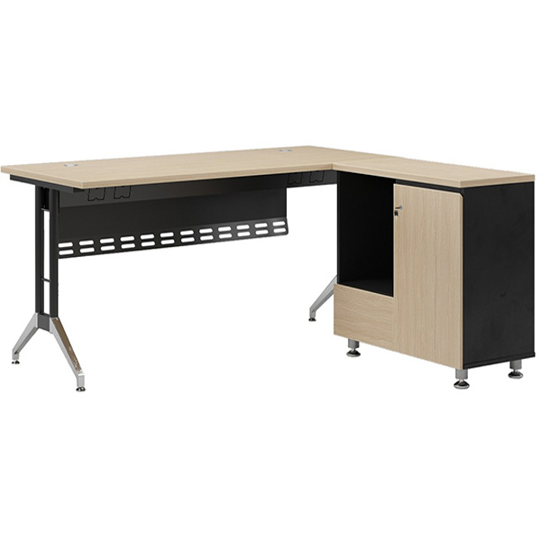 Kiểu Dáng Bàn trưởng phòng The One chân sắt sơn đen kết hợp mạ. Yếm tôn đột trang trí sơn đen. Bàn có máng điện kết hợp làm khung giằng. Chưa bao gồm tủ phụ.