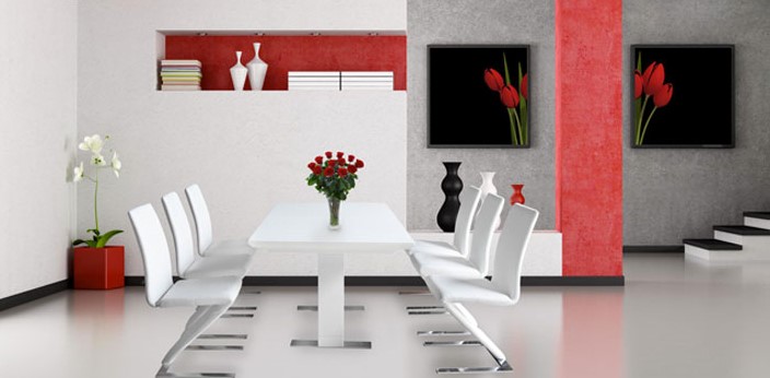 Bộ bàn ghế ăn cao cấp. Bàn gỗ sơn PU cao cấp và ghế khung thép mạ CR-Ni bọc da công nghiệp.