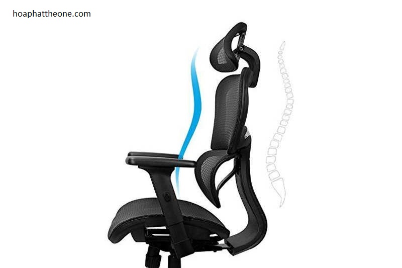 Đặc biệt, ghế còn được sản xuất với tựa lưng rộng, cao giúp cho xương sống thoải mái hơn. Đảm bảo cho cả phần cổ và lưng người ngồi được nâng đỡ trong thời gian ngồi. Khi làm việc văn phòng, thời gian nghỉ ngơi buổi trưa hay tăng ca thường là ngay bàn làm việc. Thiết kế ghế có thể ngã hãm, giúp thư giãn tốt hơn và hỗ trợ hiệu quả cho cột sống.
