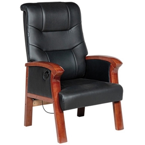 Chất liệu: Đệm tựa bọc giả da cao cấp. Tay thép mạ ốp gỗ sơn. Chân thép mạ. Có gác chân