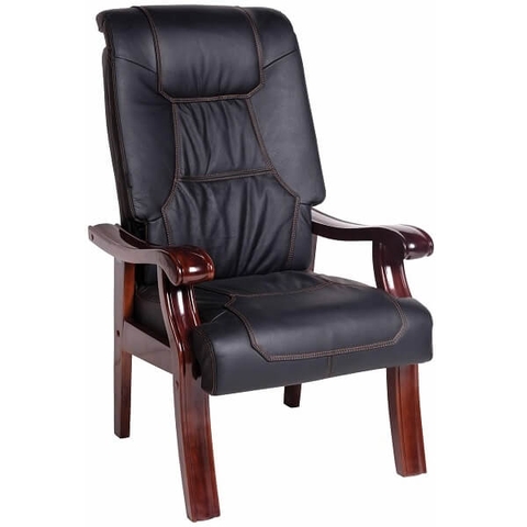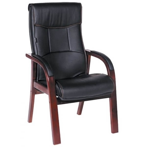 Chất Liệu Đệm tựa cốt gỗ bọc giả da cao cấp. Tay thép mạ ốp gỗ sơn. Chân thép mạ