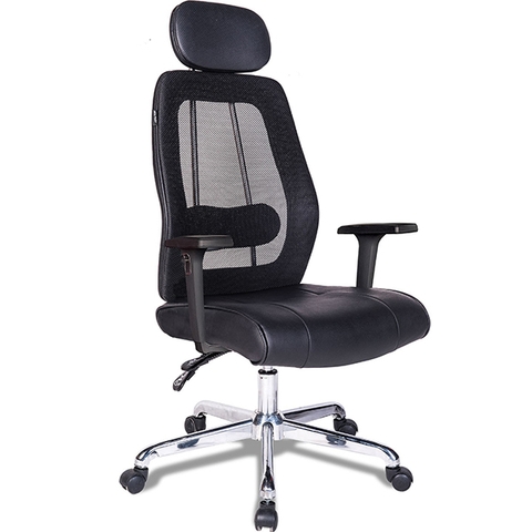 Kiểu Dáng Ghế lưng cao có tựa đầu nổi lên. Tay ghế kết cấu cách điệu hình chữ T. Chân sao 5 cánh có gắn bánh xe di chuyển linh hoạt. Bộ piston khí nén có thể điều chỉnh được độ cao thấp