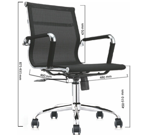 Đặc trưng  Thiết kế lưng trung, liền một khối với đệm ngồi. Hai tay vịn uốn cong theo chiều khuỷu tay. Chân ghế hình 5 múi khế có gắn bánh xe di chuyển. Ghế điều chỉnh được độ cao và ngả từ bộ điều khiển