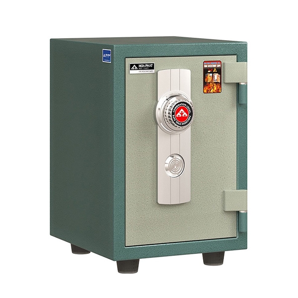Kiểu Dáng Két chống cháy. Két đứng, có khóa mã và khóa chìa. Két có 1 đợt cố định. Chân đế nhựa cố định
