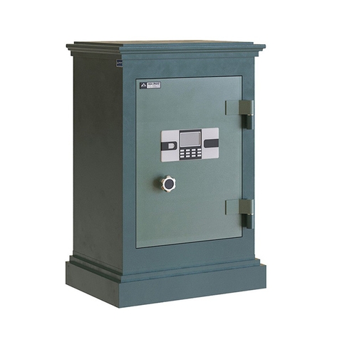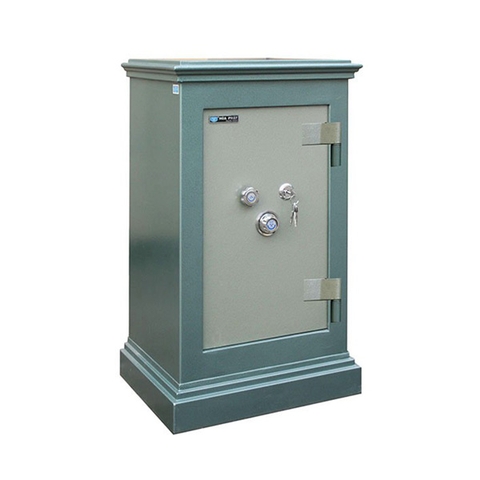 Kiểu Dáng Két sắt chống cháy chân đế có bánh xe. Két đứng, khóa chìa, khóa điện tử, tay nắm, 1 đợt di động và ngăn kéo.