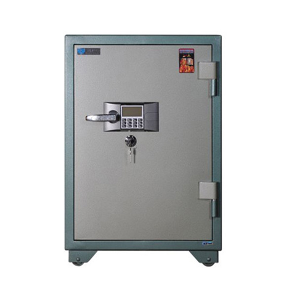 Kiểu Dáng Két sắt chống cháy chân đế có bánh xe. Két đứng, khóa chìa, khóa điện tử, tay nắm, 1 đợt di động và ngăn kéo.