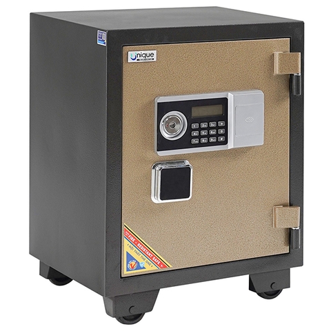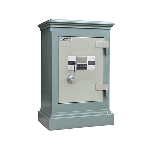 Kiểu Dáng Két điện tử chống cháy cao cấp. Két có khóa điện tử tích hợp vân tay, có khóa chìa. Két có 1 ngăn kéo phụ, 1 đợt, và 1 ngăn bí mật. Cánh có móc treo chìa khóa và khay đựng tài liệu. Tay nắm 3 chạc thép đặc mạ. Bản lề cánh gia cố thêm thép 5mm.