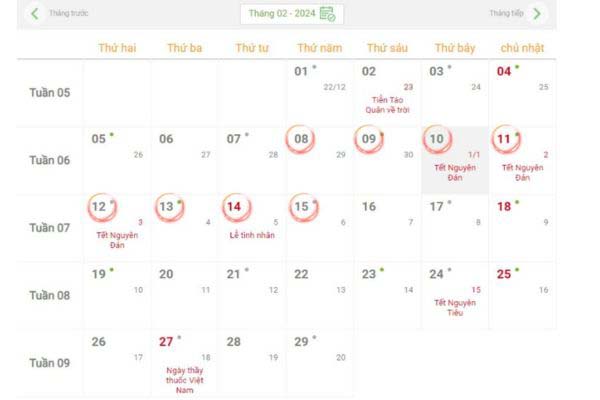 Mùng 1 Tết 2024 là ngày mấy Dương lịch?