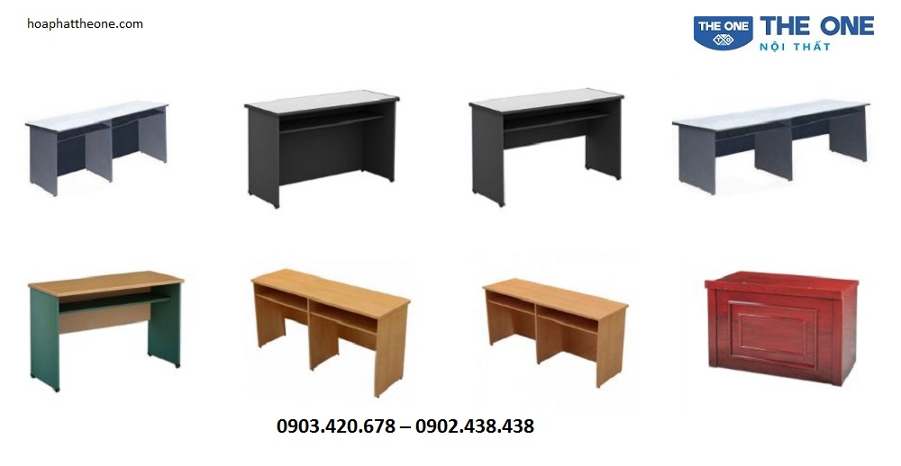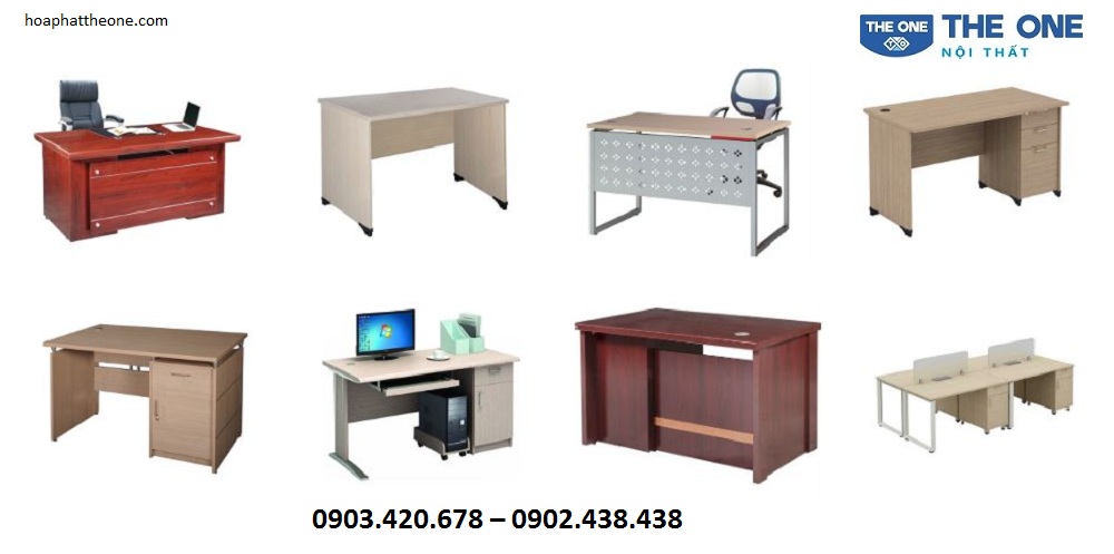 Dòng sản phẩm này sẽ có khá nhiều kiểu dáng thiết kế khác nhau cho bạn lựa chọn. Ví dụ như các mẫu bàn làm việc gỗ, bàn làm việc chân sắt, bàn chữ L, bàn kèm hộc tủ…. Màu sắc sản phẩm cũng có sự đa dạng với thiết kế theo bảng màu gỗ của The One.