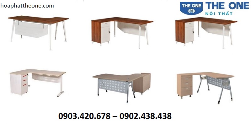 Mẫu mã sản phẩm bàn làm việc chữ L The One rất phong phú, đáp ứng nhu cầu người dùng. Trong đó, có thể kể đến 5 mẫu sản phẩm tiện ích, có giá thành rẻ được ưa chuộng là: