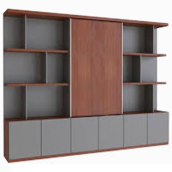 Kiểu Dáng Tủ tài liệu giám đốc phía trên chia kệ trang trí, giữa cánh lùa bên trong chia kệ. Phía dưới thiết kế hệ khoang cánh lửng.