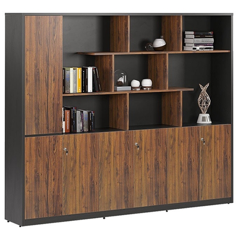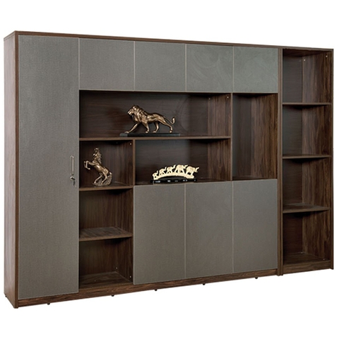 Kiểu Dáng Tủ tài liệu giám đốc có cánh dài và hệ đợt trang trí kết hợp 1 cánh lùa