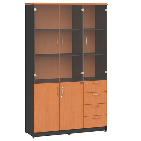 Kiểu Dáng Tủ tài liệu đứng loại 3 buồng. Phía trên gồm 3 khoang khung cánh kính