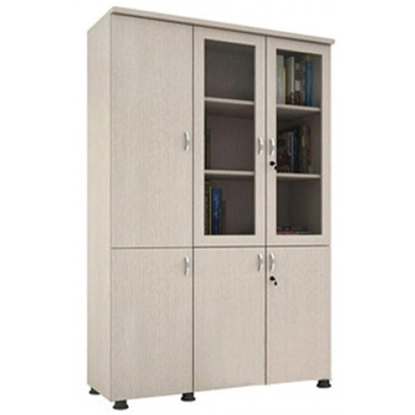Kiểu dáng Tủ tài liệu 3 buồng SME8550. Phần trên 3 ngăn, cánh kính mở có khóa và 1 cánh gỗ bên trái không có khóa. Phần dưới hai ngăn, 3 cánh gỗ, hai cánh có khóa, 1 cánh bên trái không có khóa.